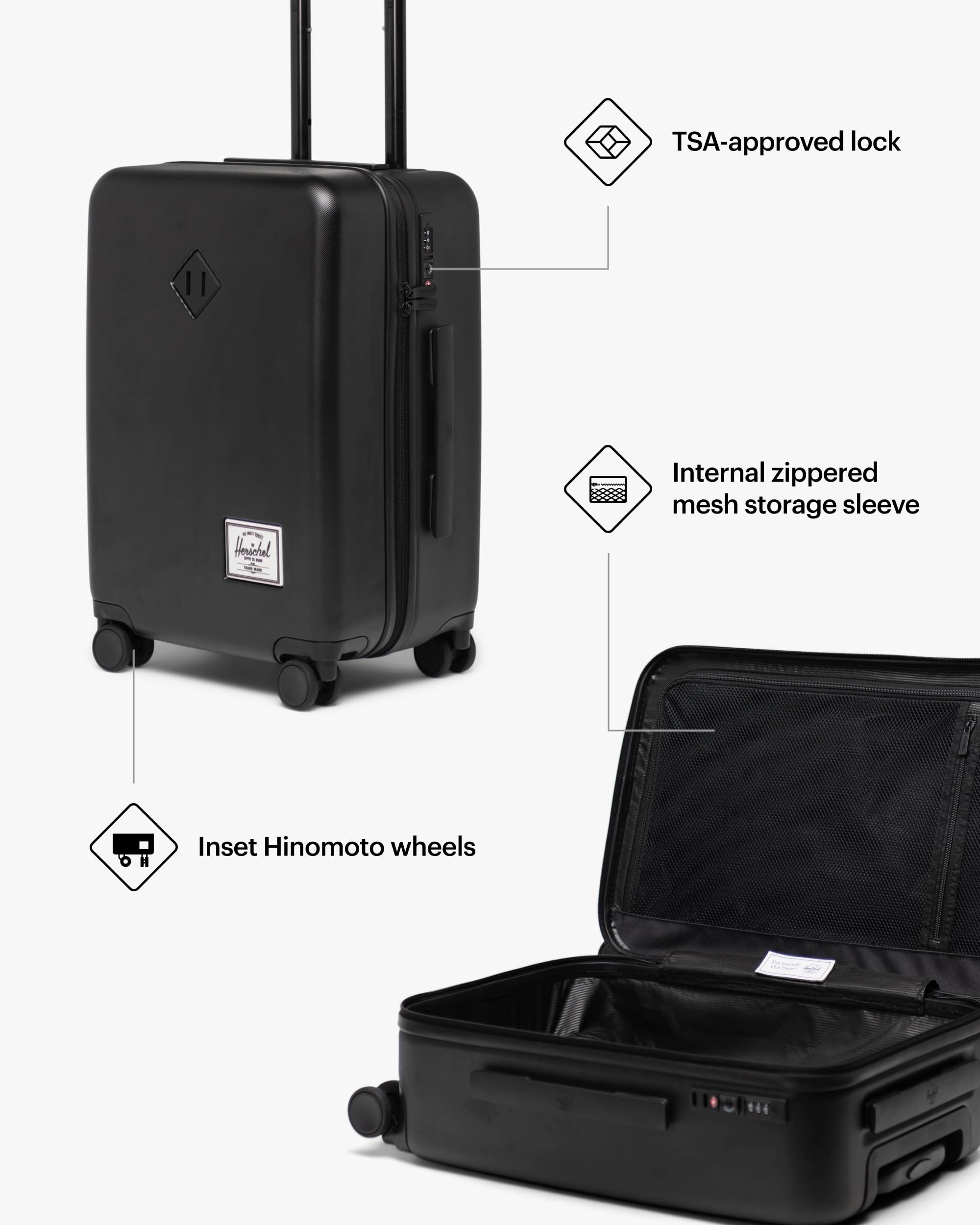 Herschel Supply Co. Heritage Hardshell Luggage, Black, Large Carry On-21 Inch—
